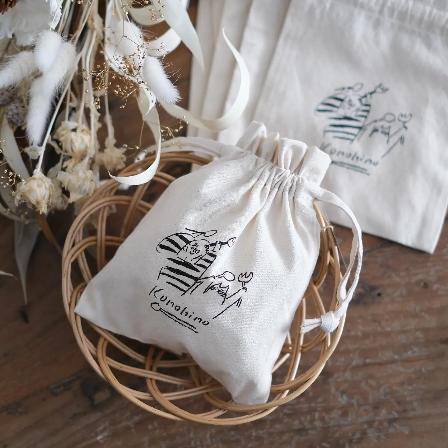 ミトベナオコさん @nm.illust デザインのオリジナル巾着。